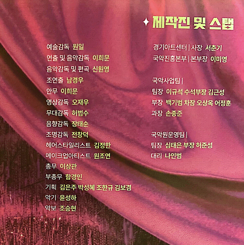 Directed by Lee Hee-moon, Nam Kyung-woo’s Assistant director, Kang Kwon Soon- Song Ensemble ‘soribom’ Appear.